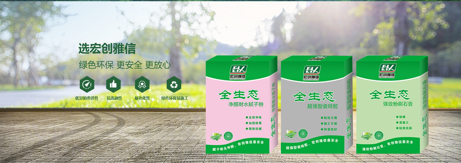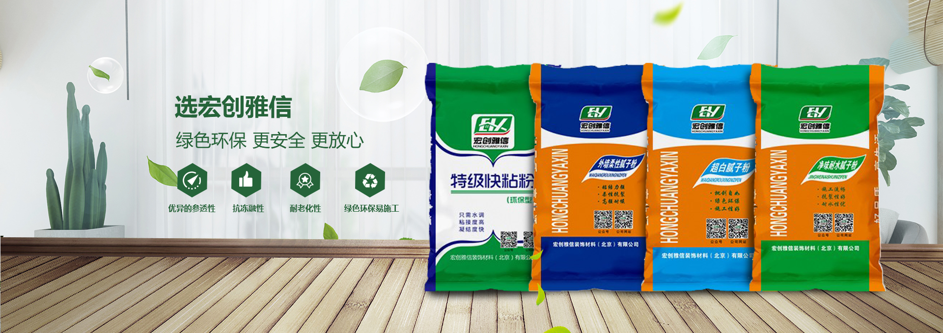 宏創雅信裝飾材料北京有限公司(威海分公司)是一家生產,研發,運輸,施工綜合性股份制企業,主要產品:快粘粉、嵌縫石膏、內外墻耐水膩子粉、內墻超細膩子粉、高強石膏、粉刷石膏、瓷磚粘接劑、填縫劑、內外墻防水涂料、108膠、聚合物粘接砂漿、聚合物抗裂抹面砂漿、灰鈣、重質碳酸鈣、砌筑砂漿、膠粉聚苯顆粒、浮雕骨料、?;⒅楸厣皾{、FTC相變節能保溫砂漿、SF增水保溫砂漿、等產品。